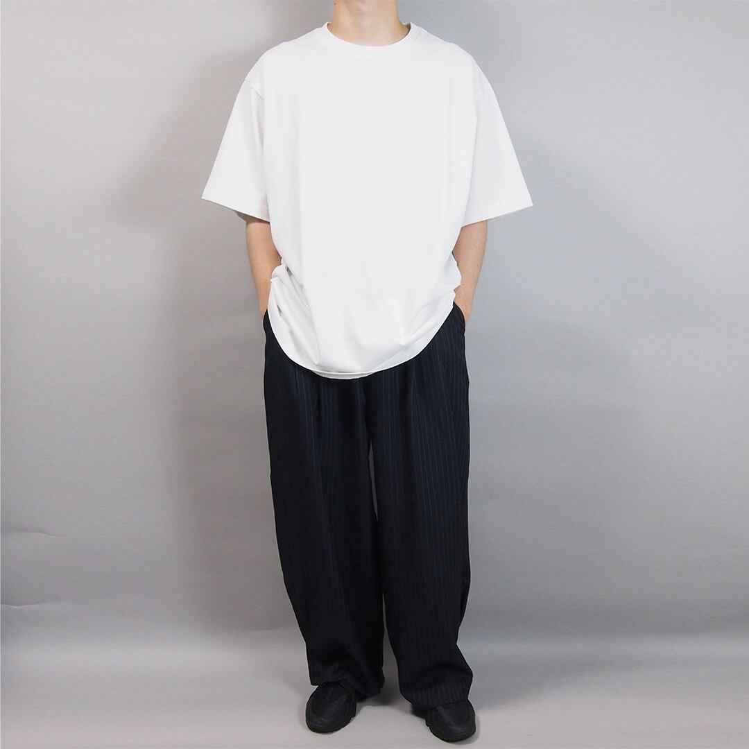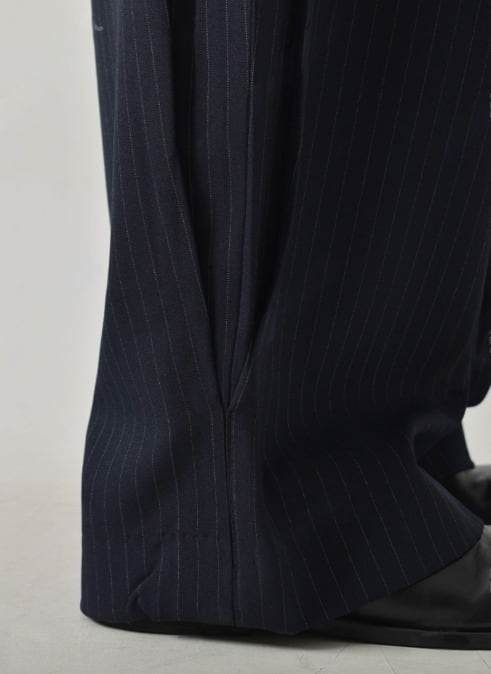 ワイドなシルエットと足元のスリットヘムが生み出すドレープにより上品な印象と洗練された印象を演出。さらにウールライクなポリエステル素材でシワになりにくく、日常使いにも最適な一着となっています。